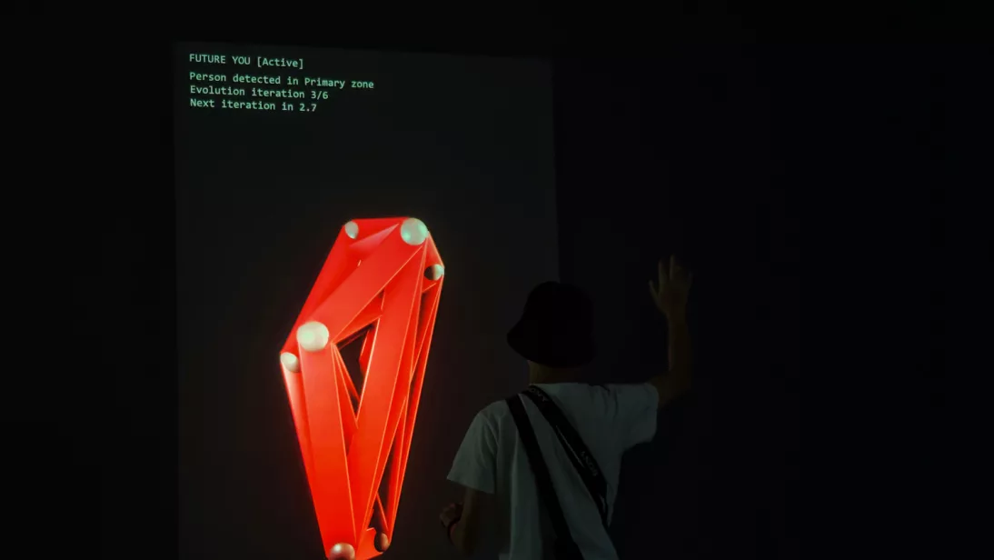 Anchored in the concepts of code and soul, the exhibition confronts a profound question: as human behaviour is rendered into data and emotions are encoded, what forms of existence lie ahead? Algorithmic lifeforms evolve, a digital fashion show unfolds, and audience movements are transformed into digital reflections of the self. Gazing into the digital mirror, you encounter the “Future You.”
