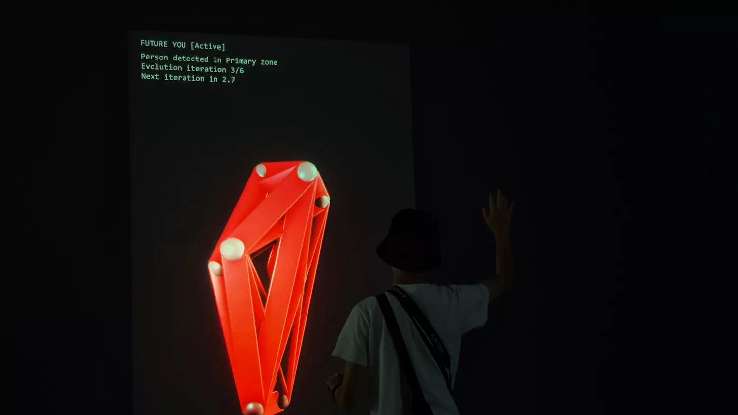 sensing technologies to create an immersive space that invites audiences to imagine new futures for humanity, technology, and evolution.