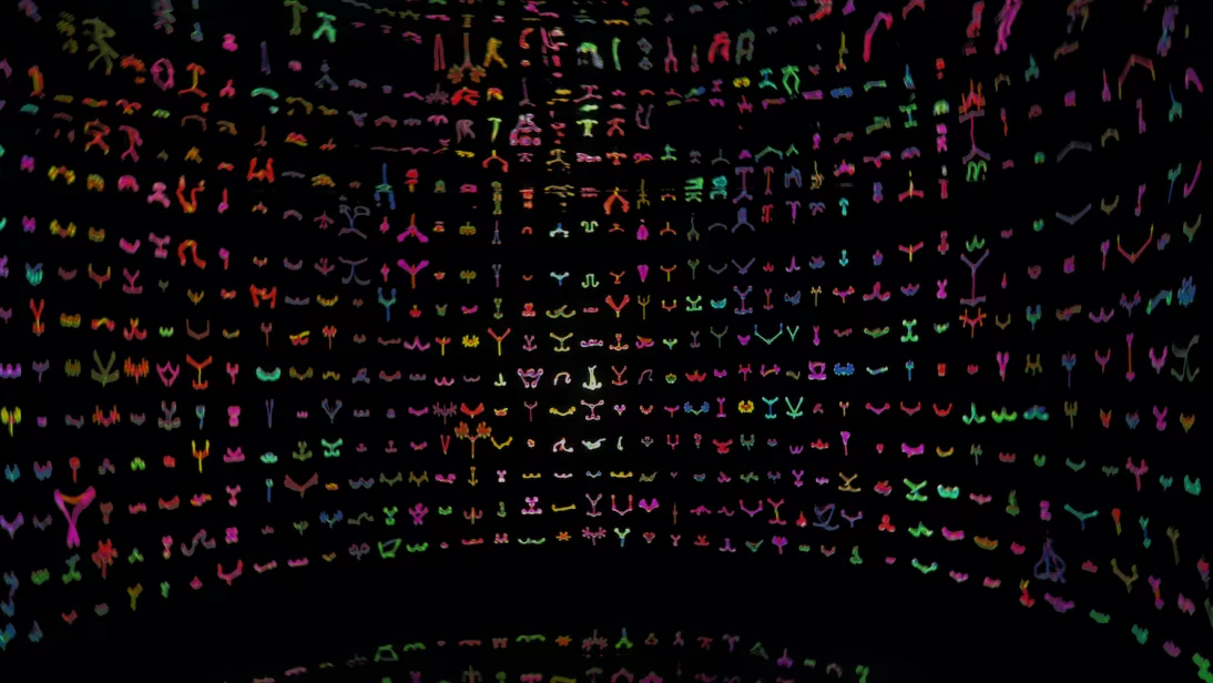 Showcasing some of our most iconic moving images and interactive works, the exhibition weaves together generative algorithms, dynamic visuals, and